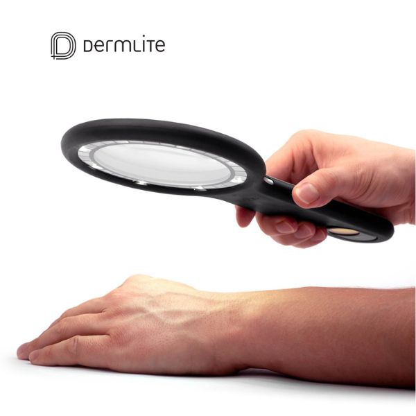 Su gran lente esférico de 100 mm de diámetro con un aumento de 2,3x permite una visualización inigualable de las estructuras dermatológicas con una claridad óptica excelente.
