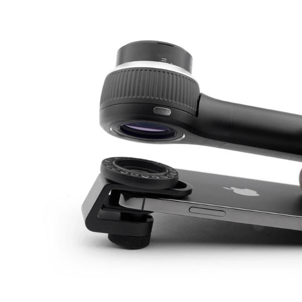 Resistente y seguro. Su matriz magnética sostiene su DermLite sin interferir con la electrónica de su teléfono inteligente.
